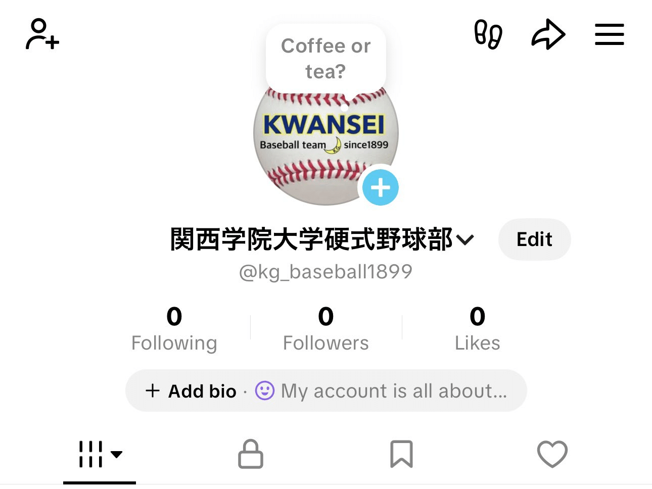 この度、関西学院大学硬式野球部は、TikTokアカウントを開設いたしました!