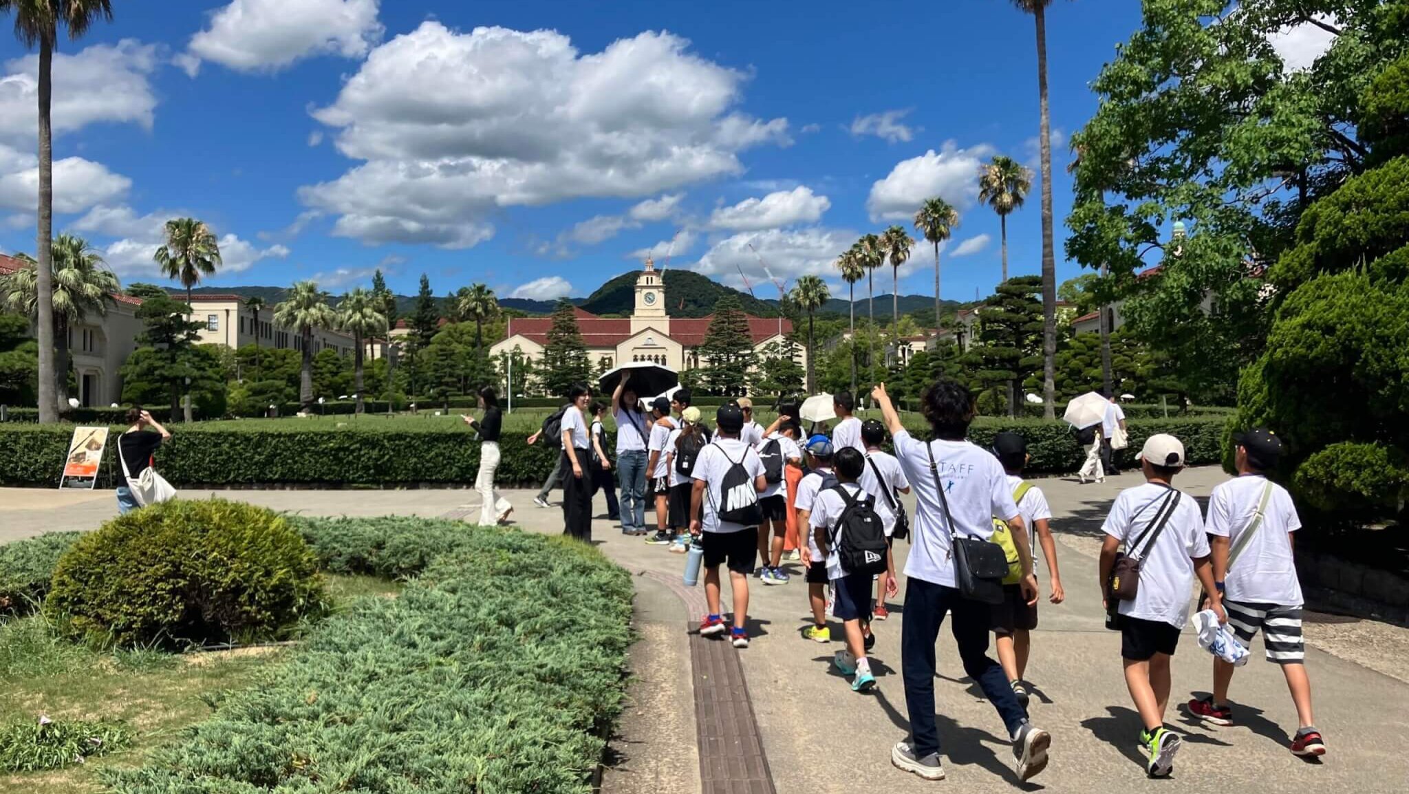 関西学院大学を訪れた子どもたちは、カードゲームを使ったワークショップで交流すると共にキャンパスツアーを通じて、本学学生と交流を図るとともに広大なキャンパスや施設を体感しました。