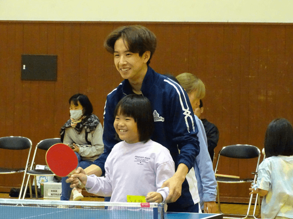11月2日、夢スポ体験会(2日目)は、体育会ソフトテニス部、卓球部のイベントに小学生約30名が参加しました。